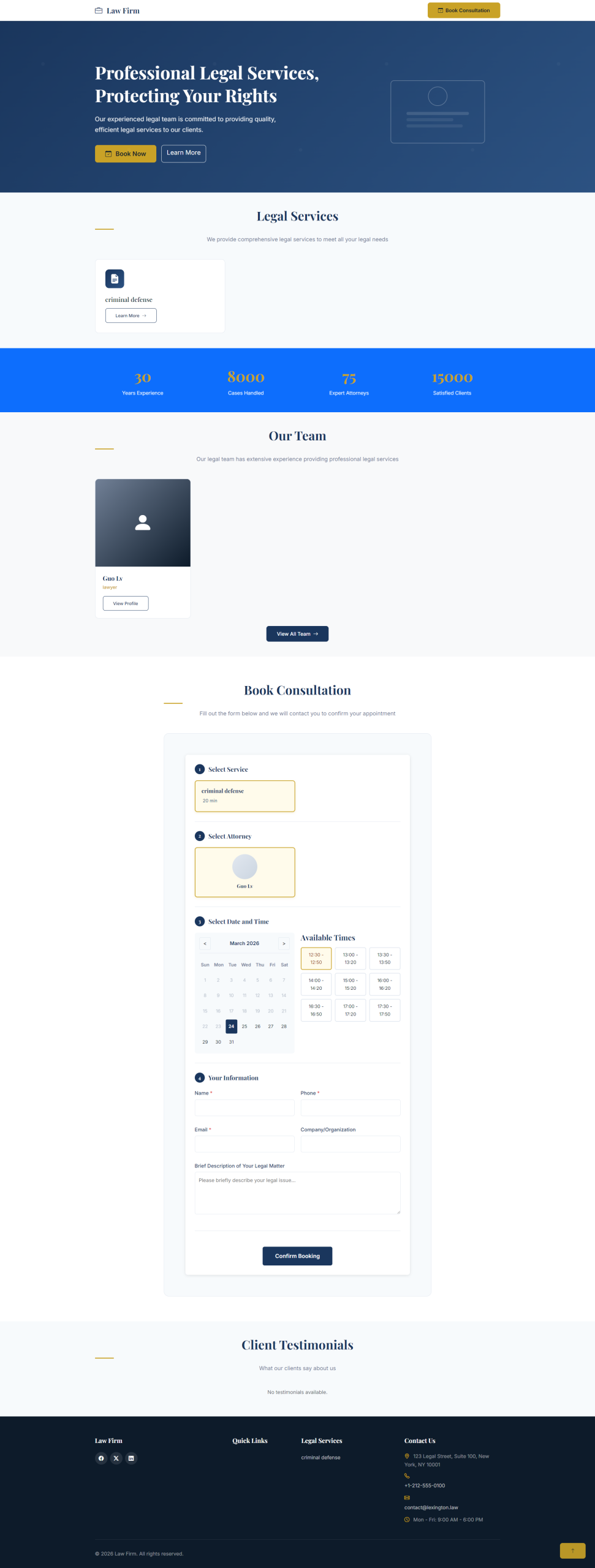 • Lexis Law Firm Functionality: Required for Team, Services, Testimonials
